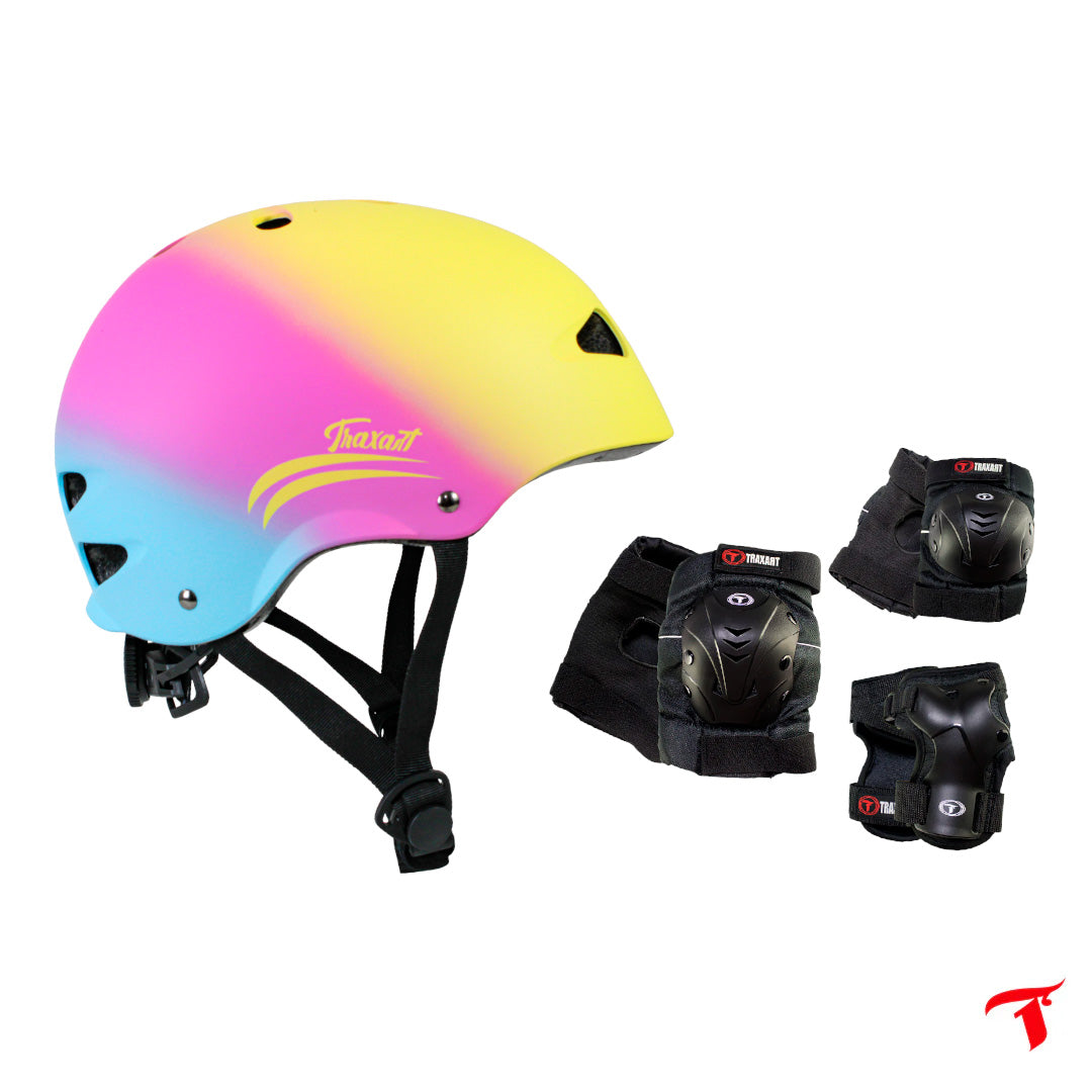 Kit Capacete Intermediário Rainbow Pink + Proteção Infantil Pink