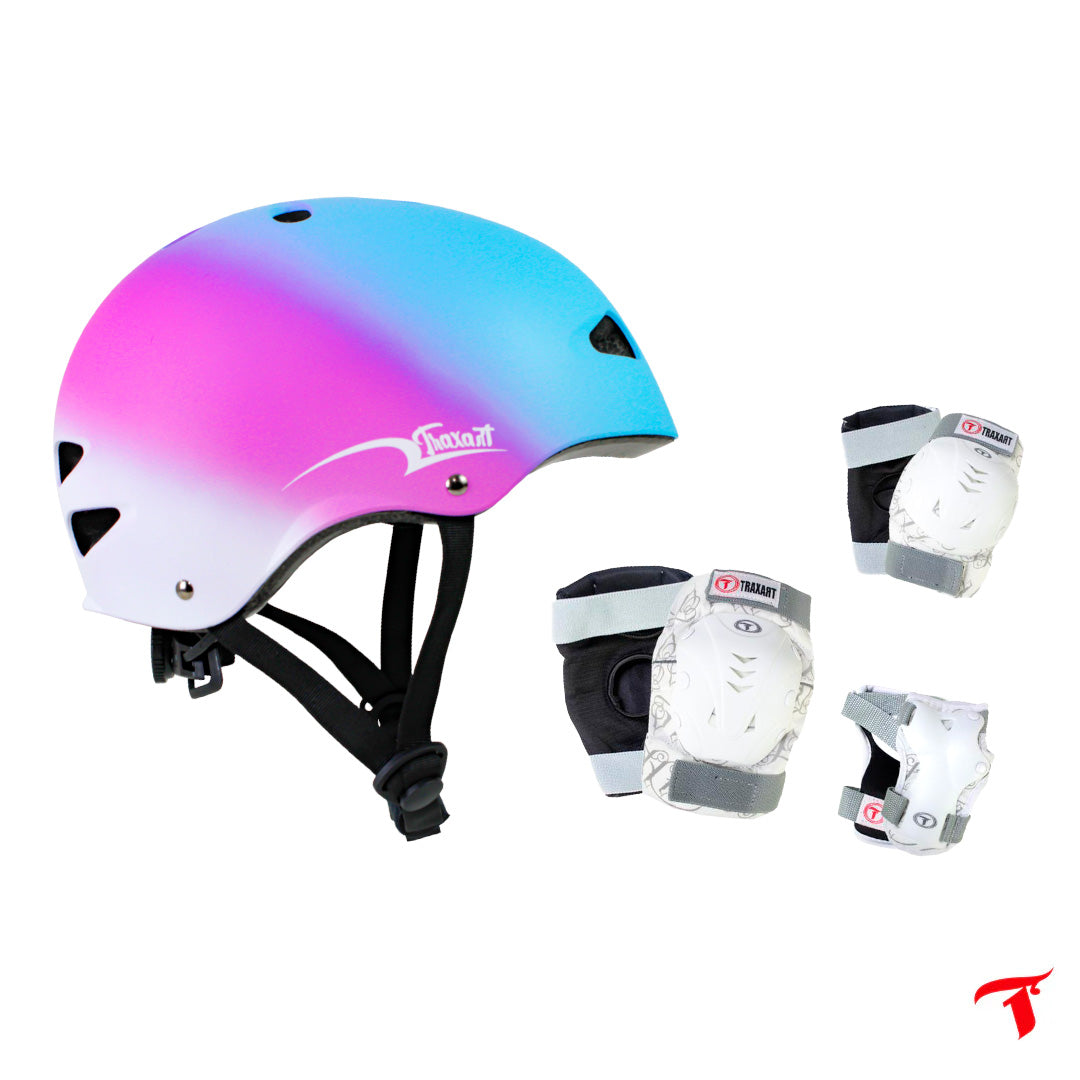 Kit Capacete Intermediário Rainbow Pink + Proteção Juvenil SSE-611
