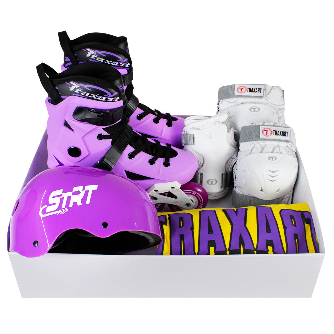 O Kit Intermediário inclui Patins Revolt Lilas, Capacete STRT Roxo, e Protetor DK-619. Esse kit é uma ótima opção para você que curte passeios ou está iniciando na prática do freestyle urban, o Patins possui agilidade e firmeza, ajudando na evolução na patinação. Seus acessórios são de excelente qualidade, permitindo mobilidade completa para melhor performance no esporte.