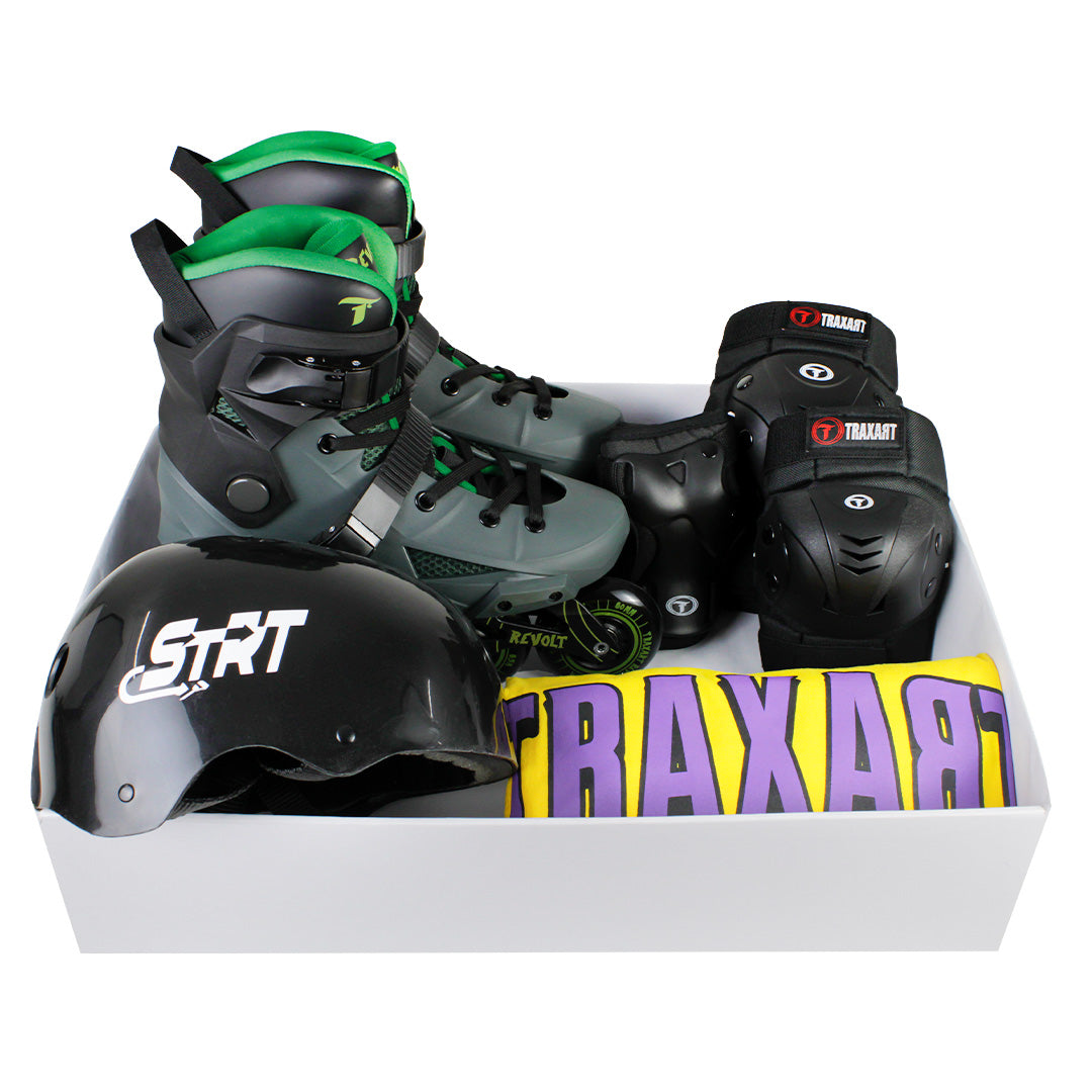 O Kit Intermediário inclui Patins Revolt Verde, Capacete STRT Preto, e Protetor DR-029. Esse kit é uma ótima opção para você que curte passeios ou está iniciando na prática do freestyle urban, o Patins possui agilidade e firmeza, ajudando na evolução na patinação. Seus acessórios são de excelente qualidade, permitindo mobilidade completa para melhor performance no esporte.