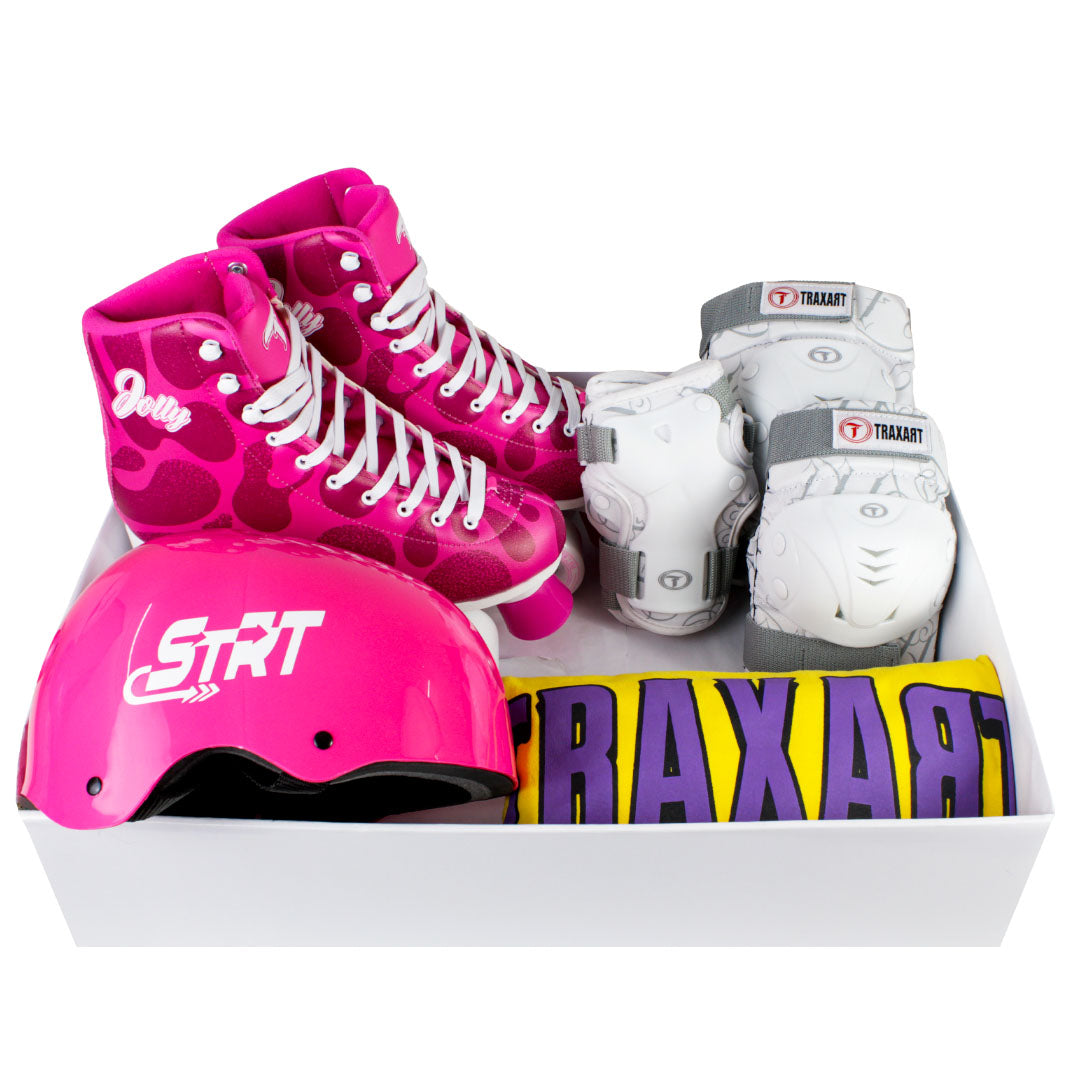 O Kit inclui o Patins Jolly Pink v3, Capacete STRT Pink e Protetor DK-619.