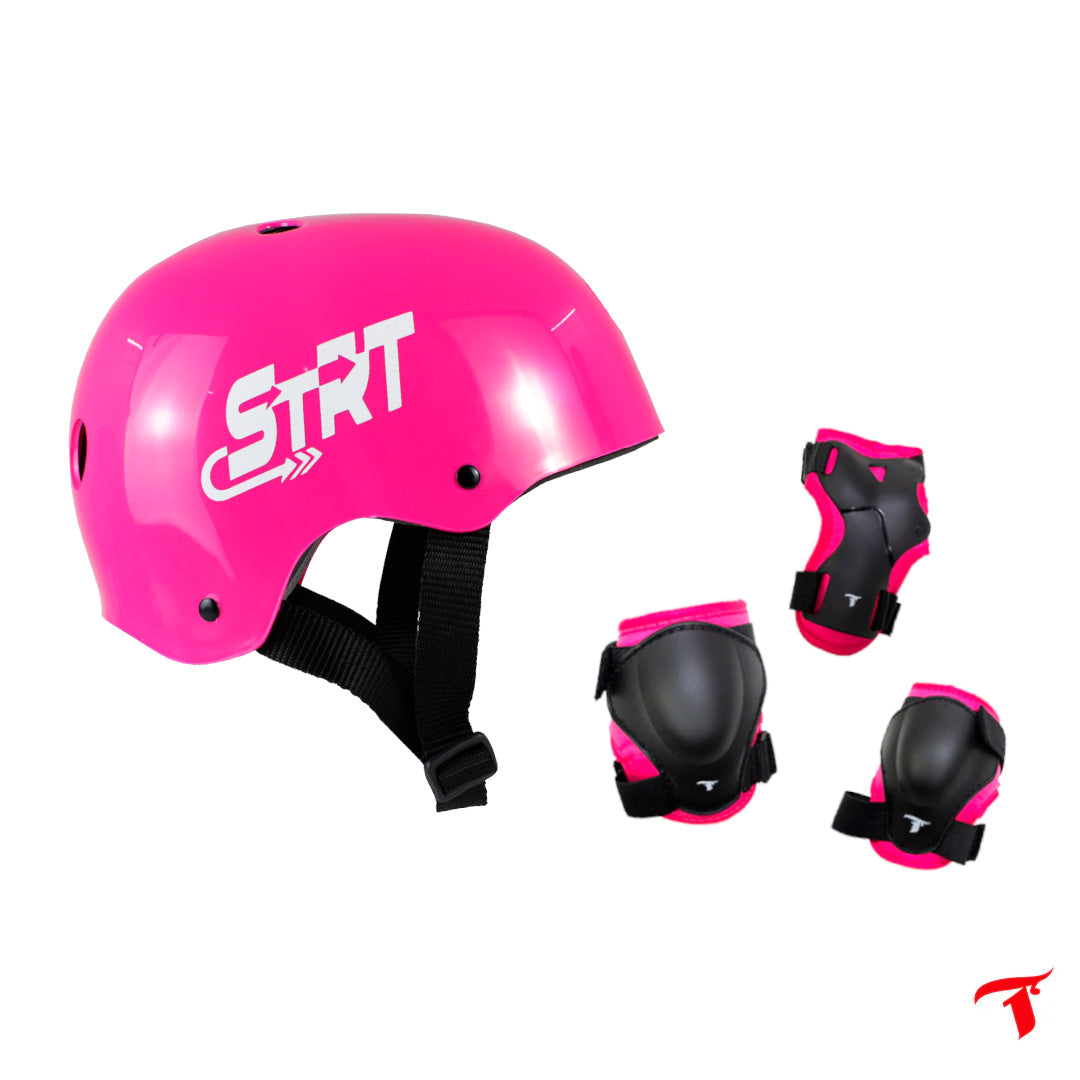 Este é um kit de proteção completo incluindo o Capacete STRT Pink e o Kit de Proteção infantil DY-144