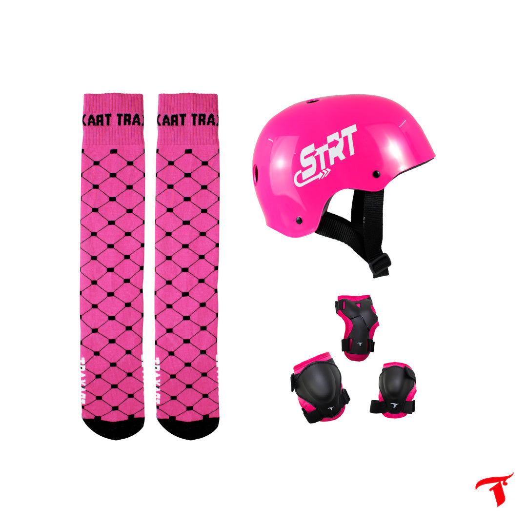 Kit Capacete Intermediário Rose + Proteção Infantil Pink
