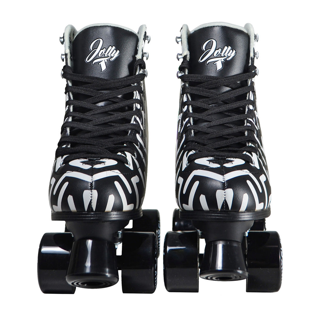 O Jolly é feito em bota única com cano alto bem firme de couro sintético. As rodas são de poliuretano (PU) de 58mm com dureza 83A, e os rolamentos são ABEC-7. A base é de plástico reforçado e o freio é fixo em ambos os pés.