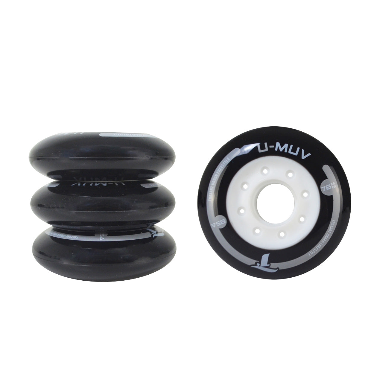 As rodas freestyle Traxart U-MUV são todas feitas de poliuretano em 76mm dureza 85A. Essas veem em jogo de 4 rodas, todas com cubo fechado, para melhor performance em saltos e manobras. Por ser de dureza 85A, ela dura mais em uso de rua, e performa melhor em manobras de precisão como slalom. Por serem rodas menores em 76mm, elas são uma ótima opção para quem procura rodas para roquear o patins.