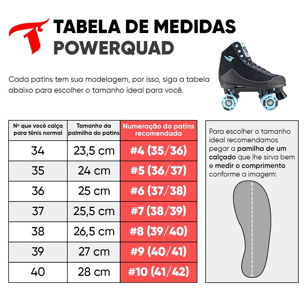 O Patins Quad Traxart Powerquad é indicado para iniciantes e intermediários da patinação com quads. Pode ser usado em quadras poliesportivas, rinques de patinação, asfaltos lisos como ciclovias e orlas e também nas ruas, mas neste caso dando preferência para asfalto pouco acidentado. Suporta até 80kg.