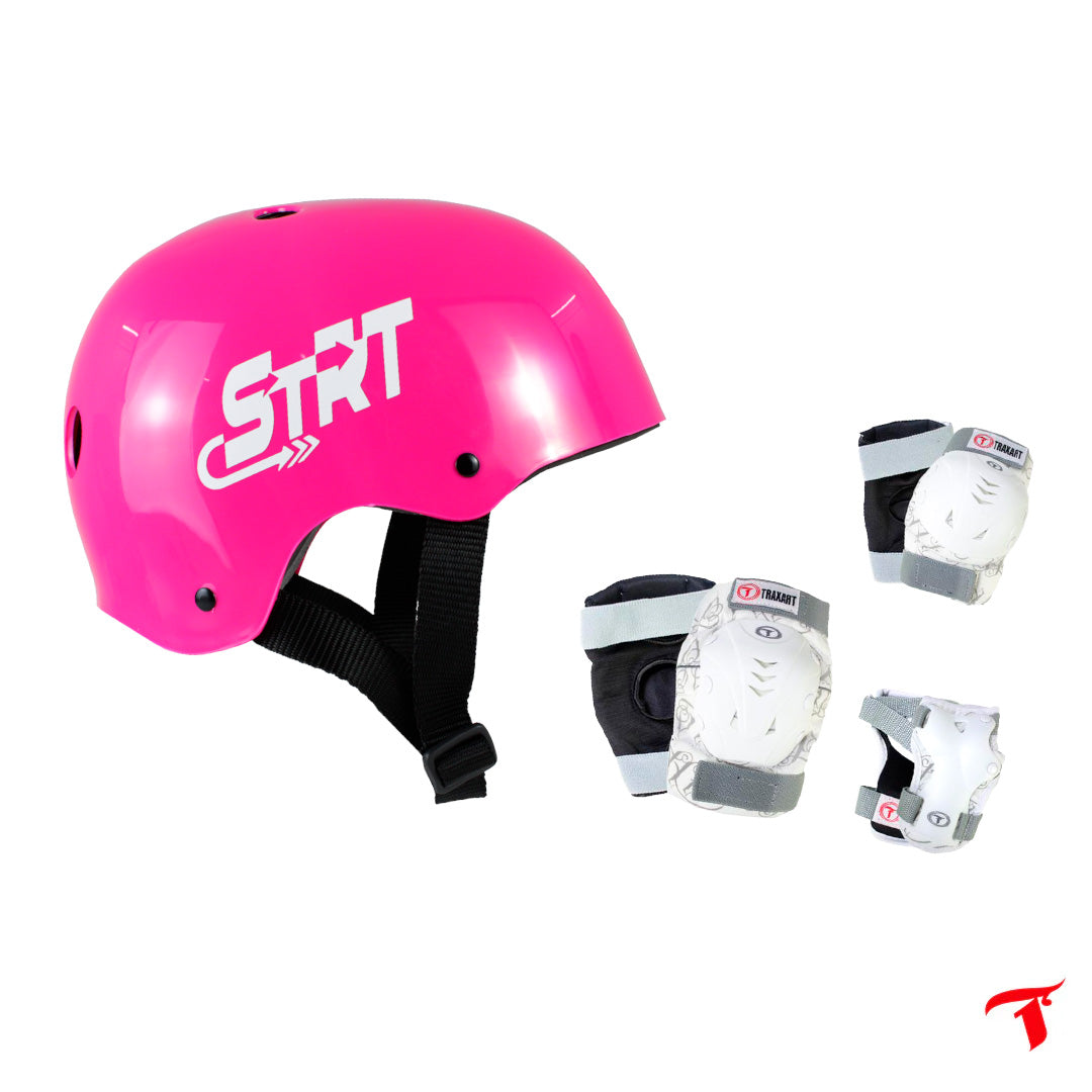 Kit Capacete STRT Pink + Proteção Juvenil SSE-611