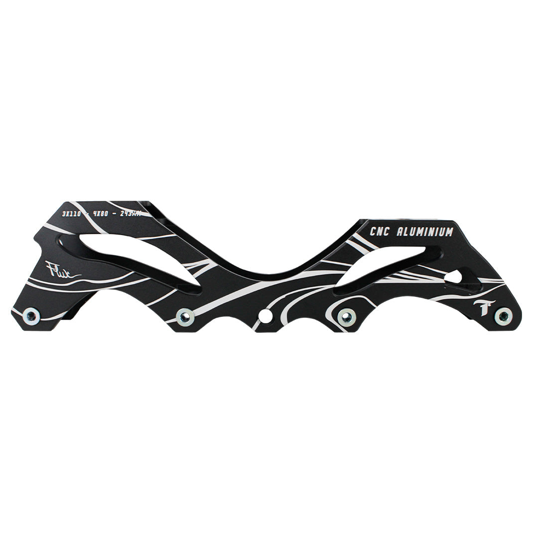 A Base Híbrida Traxart é uma base de alumínio CNC cuja furação permite 2 configurações: 3 rodas de 110mm ou 4 rodas de 80mm. Essa base tem furação universal 165mm e é compatível com os patins Freestyle do #4 ao #12. Já o comprimento, é de 243mm.
