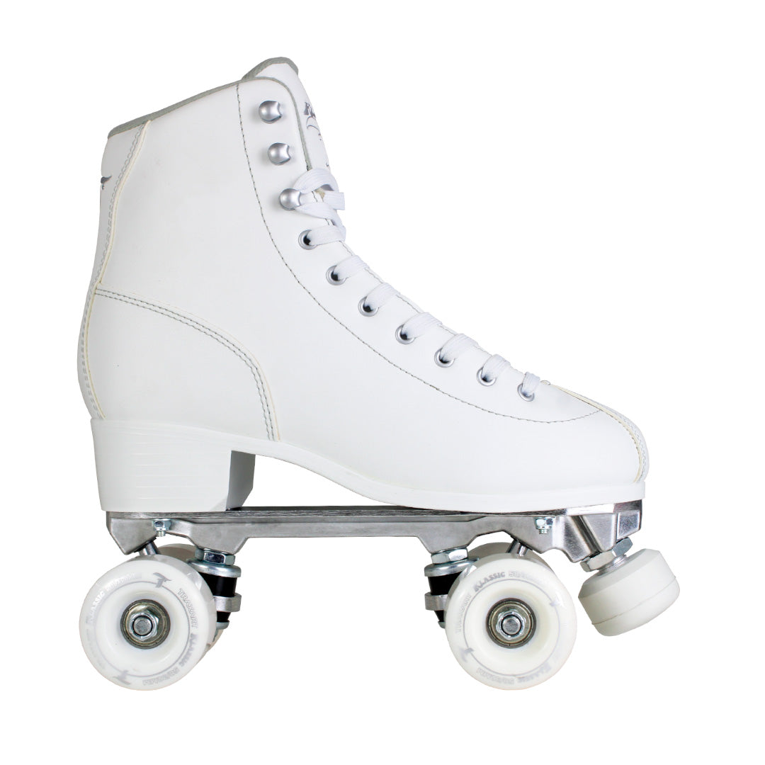 Patins Traxart Klassic, com visual retrô, confortável e firme, ideal para quem busca estilo e diversão. Pode ser usado em quadras, rinques, asfaltos lisos e ruas pouco acidentadas, sendo perfeito para passeios, dança e lazer. Suporta até 100kg.